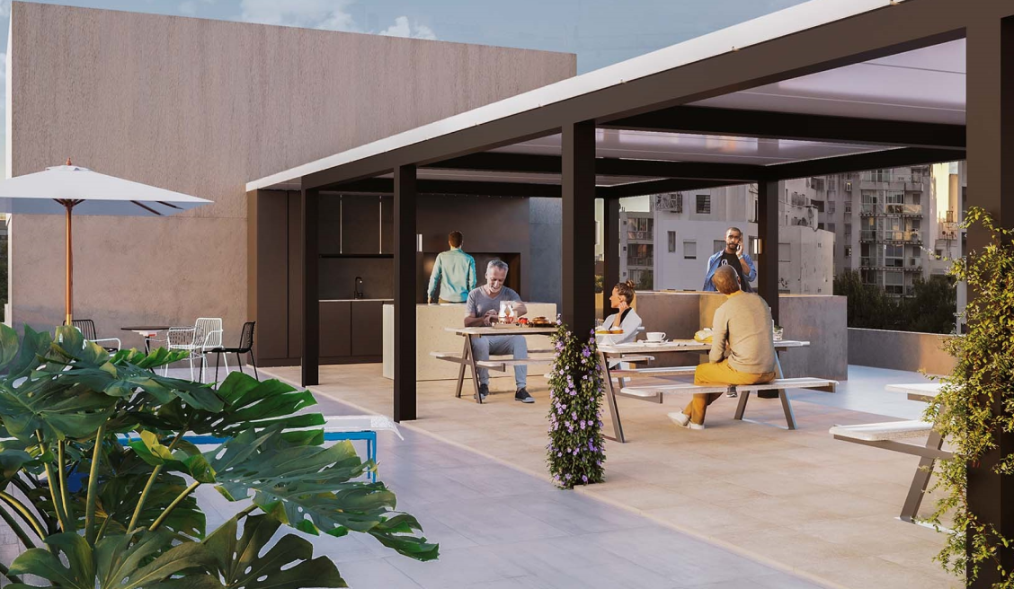 Pilay 1 – Charrúa, consta de 69 apartamentos, todos con terraza o patio, distribuidos en 7 plantas que van desde el subsuelo, planta baja, pisos del uno al cuatro y solárium transitable. Todas las unidades cuentan con terraza, 54 de ellas tienen una superficie de 42 y 51 metros cuadrados entre comunes y propios, y 15 unidades cuentan con patio o terraza ampliada, que van desde 54 a 75 metros cuadrados en total.